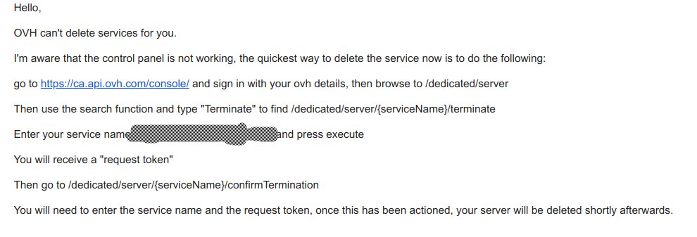 I tried to delete my account back in 2012 or so and back then they were asking me to send a letter to their lawyers for that. OVH has left an atrocious taste in my mouth since.